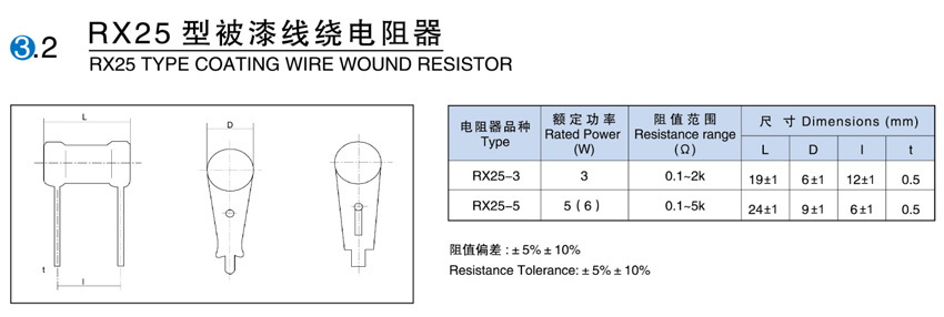 > RX25型被漆线绕电阻器