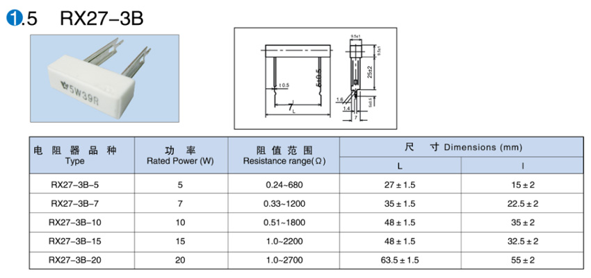> RX27-3B陶瓷外壳线绕电阻器
