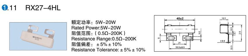 > RX27-4HL陶瓷外壳线绕电阻器