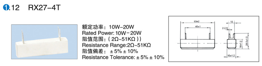> RX27-4T陶瓷外壳线绕电阻器