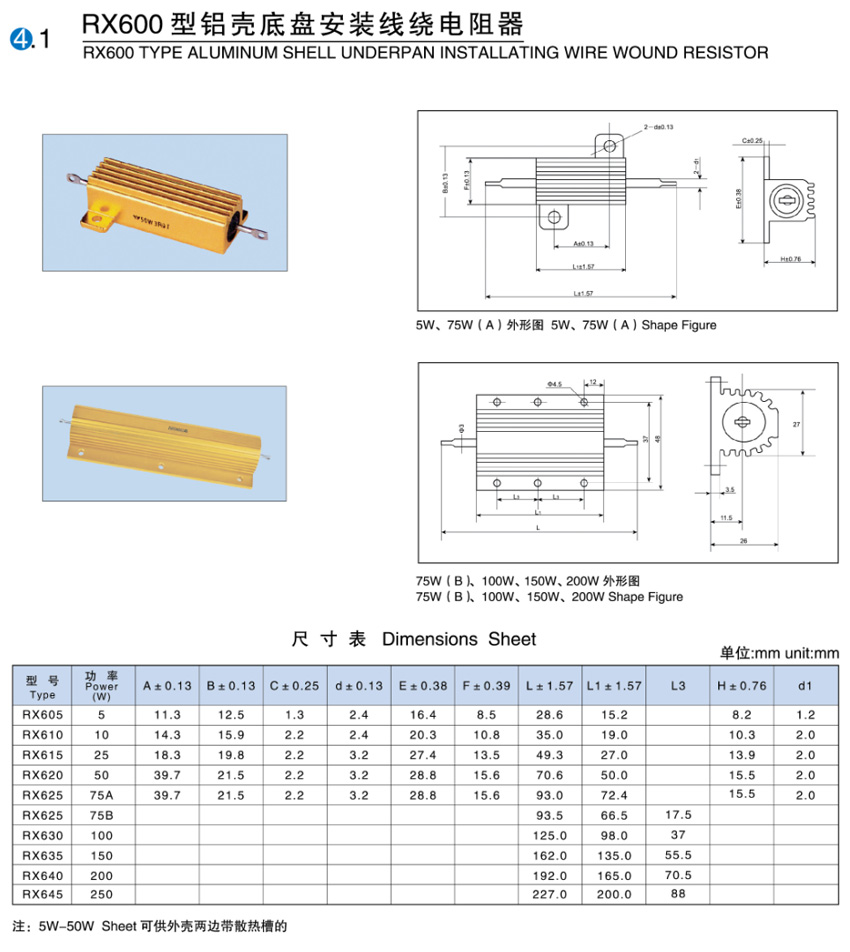 > RX600铝壳底盘安装线绕电阻器