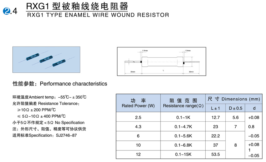 > RXG1型被釉线绕电阻器