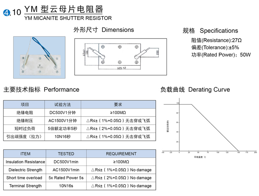 > YM型云母片电阻器