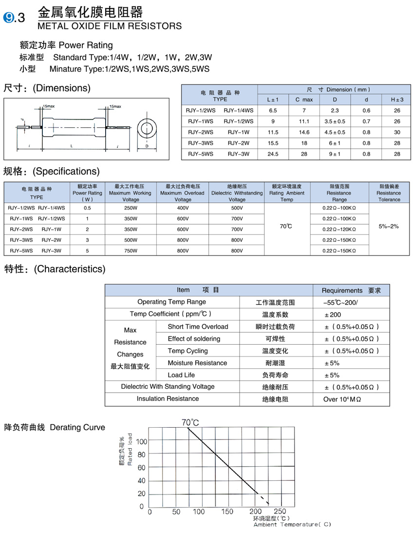 RYH金属氧化膜电阻器