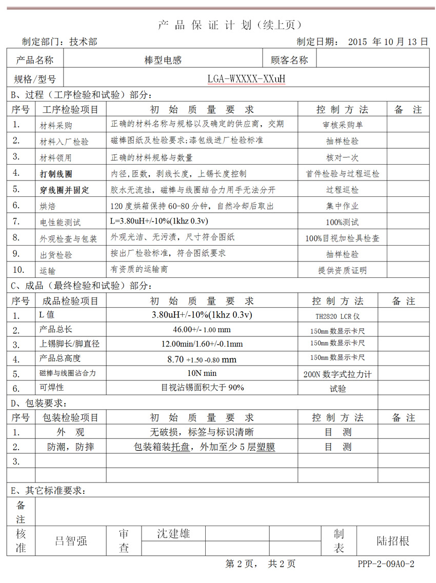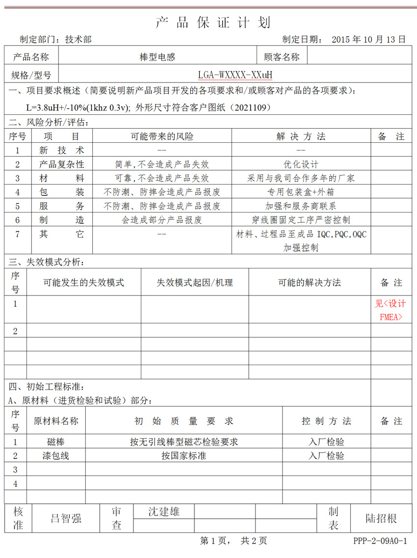 控制计划(试生产阶段)范例